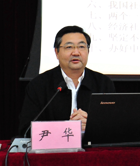 尹華在宣講報告中圍繞黨的十九大的主題和主要成果、十九大報告起草過程、過去5年的歷史性成就和歷史性變革、習(xí)近平新時代中國特色社會主義思想、中國特色社會主義進入新時代、我國社會主要矛盾的變化、兩個一百年奮斗目標(biāo)的戰(zhàn)略部署、經(jīng)濟社會發(fā)展重大戰(zhàn)略部署、堅定不移推進全面從嚴(yán)治黨、辦好中國特色社會主義教育等十個方面進行了系統(tǒng)闡述。