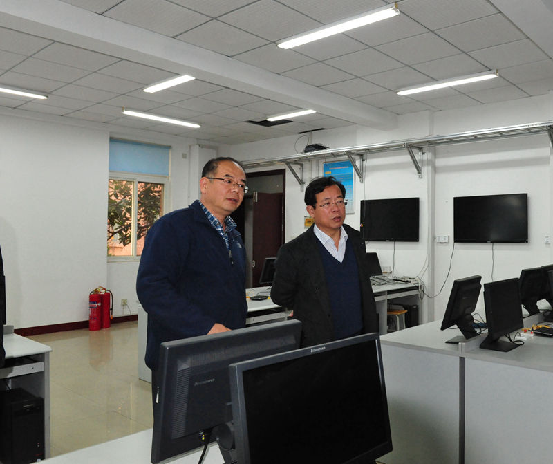 座談會(huì)結(jié)束后,周東華實(shí)地察看了財(cái)經(jīng)系、電氣信息系的實(shí)驗(yàn)室建設(shè)。