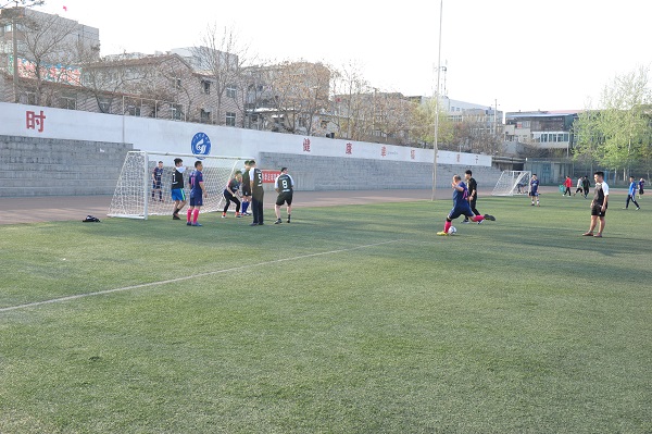 5月10日下午4時(shí),風(fēng)雨乍起,信管專業(yè)隊(duì)和財(cái)經(jīng)系隊(duì)之間的聯(lián)賽比賽如常進(jìn)行,同時(shí)在另一塊場(chǎng)地還進(jìn)行了一場(chǎng)教工隊(duì)和計(jì)科專業(yè)隊(duì)的友誼賽。兩場(chǎng)“雨球”,是本季聯(lián)賽所有參賽球隊(duì)所共同體現(xiàn)出來的男兒拼搏精神的一個(gè)縮影。