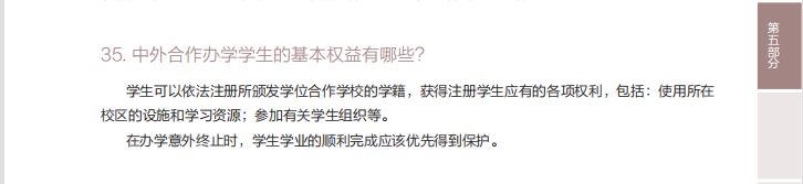 為了進(jìn)一步加強(qiáng)對中外合作辦學(xué)政策的宣傳,使廣大校區(qū)師生更好地了解和掌握中外合作辦學(xué)信息,國際交流與合作辦公室陸續(xù)推出《中外合作辦學(xué)100問》的學(xué)習(xí)活動,定期更新由中國教育國際交流協(xié)會編寫的手冊內(nèi)容。