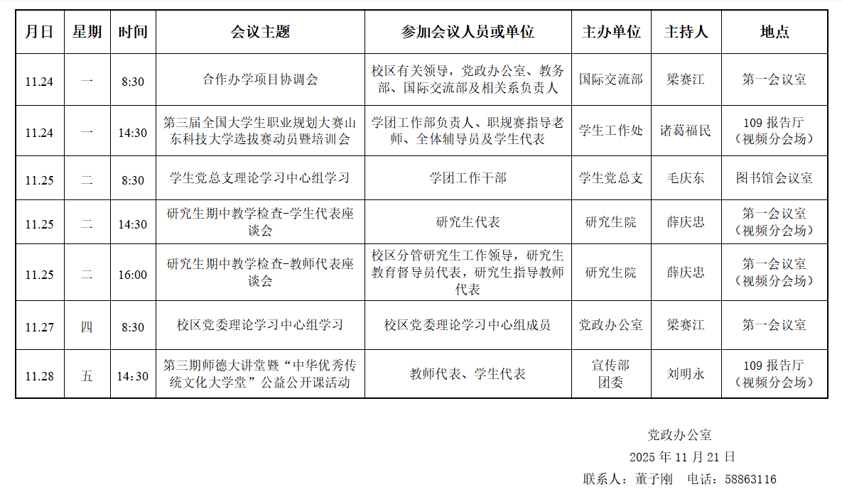 濟(jì)南校區(qū)第十三周會(huì)議安排