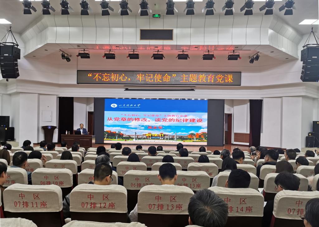11月5日,濟南校區(qū)黨委常務副書記高永軍以“從黨章的修改,談黨的紀律建設(shè)”為題為校區(qū)全體師生黨員講授專題黨課。