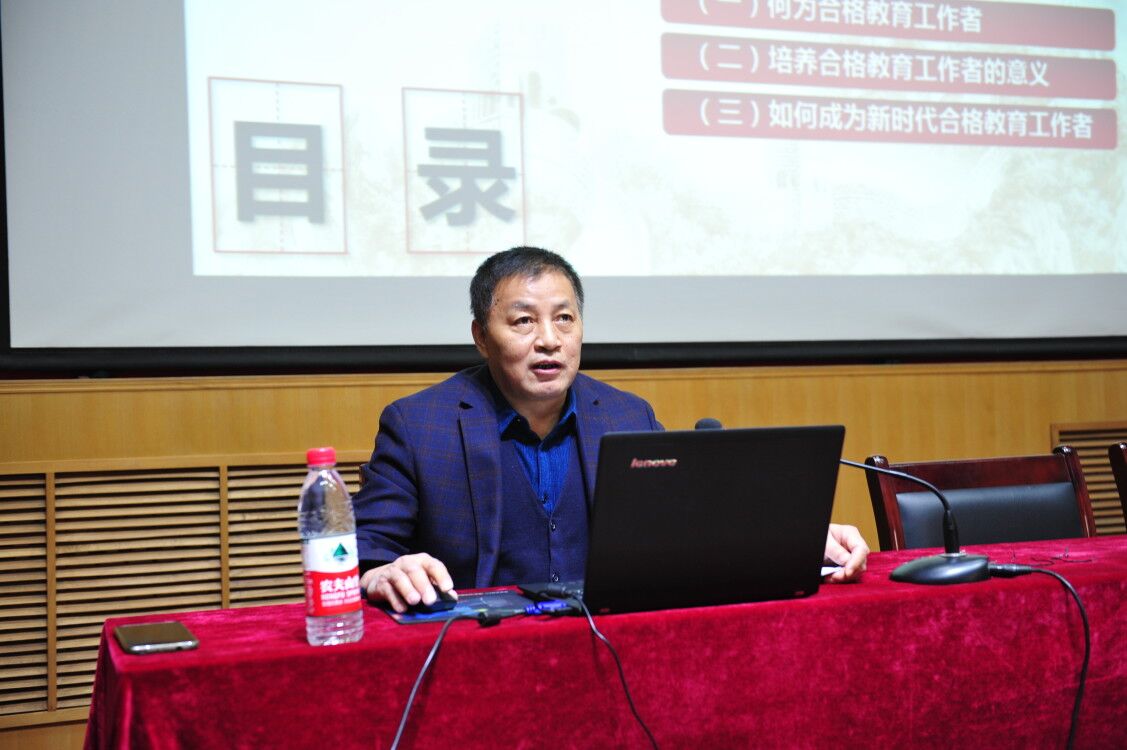 孫建峰以“堅定理想信念,做新時代合格教育工作者”為題為財經(jīng)系黨總支、機關(guān)黨總支全體黨員講黨課