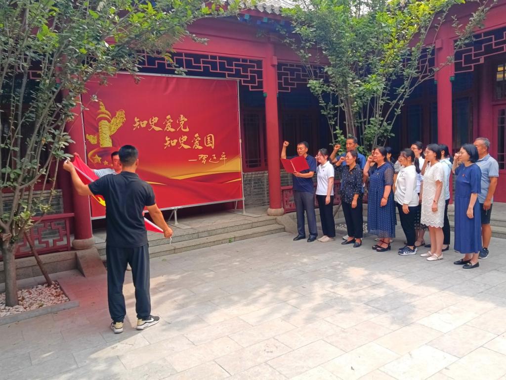 參觀結(jié)束后,全體黨員面對黨旗,高舉右手莊嚴(yán)宣誓,重溫自己對黨忠誠誓言。